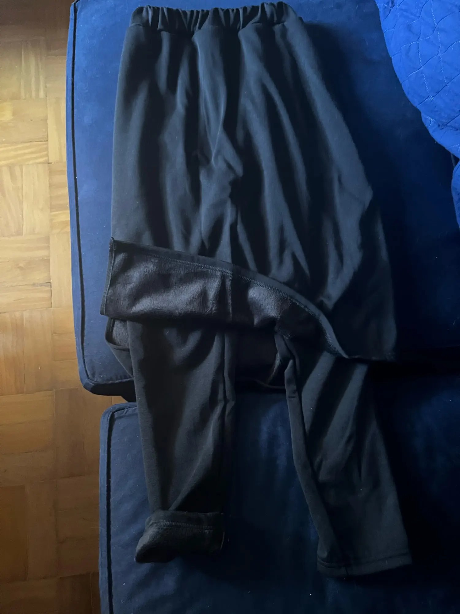 Identical to those in the photo. Are very warm and super soft. I have 1,69 and 60kg, I bought XL, l, m but I did not notice any difference in the sizes (nor in the body and measuring one on top of the other).