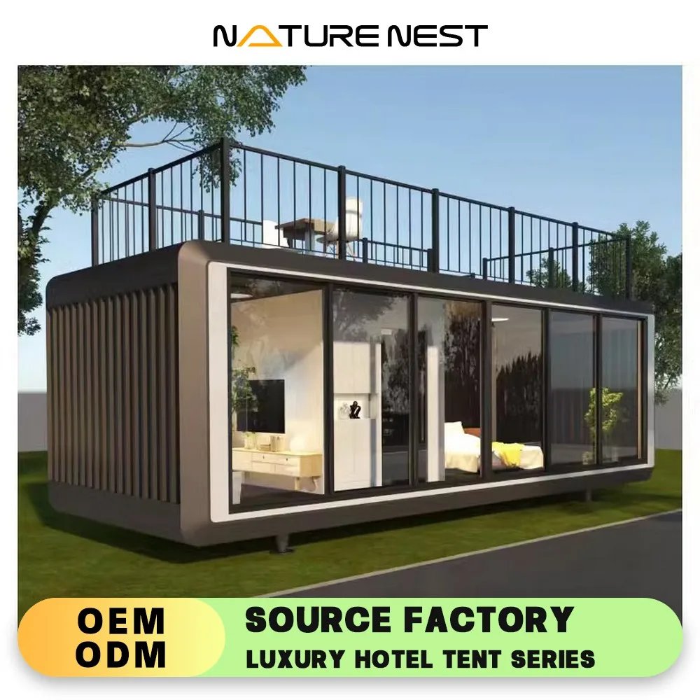 NatureNest tent factory are a factory specializing in the production of high-quality, durable and safe outdoor hotel tents. We have 107 models of hotel outdoor tents, which are sold to 193 countries around the world. Our tents include luxury hotel tents, resort tents, family camping tents, commercial rental tents, etc. Our factory is located in FoShan, Guangdong, China. It was established in 1995 and originated from the love of hotel vacations, outdoor life and the pursuit of quality. Due to the good quality, easy construction and safe and stable transportation of our products, our products are deeply trusted and praised by customers all over the world. After 29 years of development, we have become one of the leading companies in this field. In 2023, as the preferred product company of outdoor tents in China, we have obtained more than 40 patents. In the future, we will continue to adhere to the principle of quality first and customer first, continuously improve the quality and service level of hotel home tents, grow together with customers, and create a better future.Villas Containers Live Homes Building High QualityWholesale Fast Assembly Tiny Prefab Extendable Flat Packed Houses Prefab House