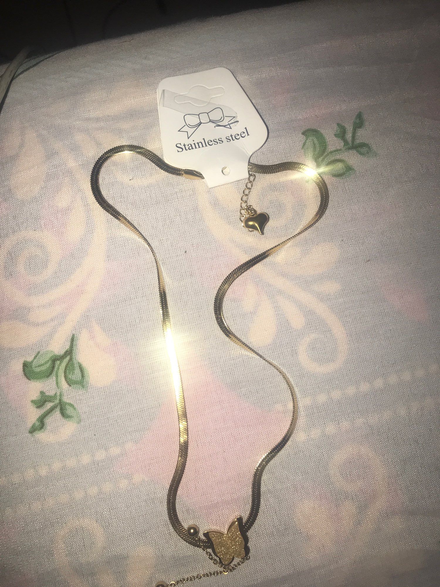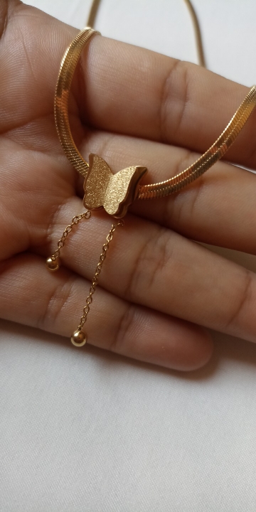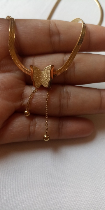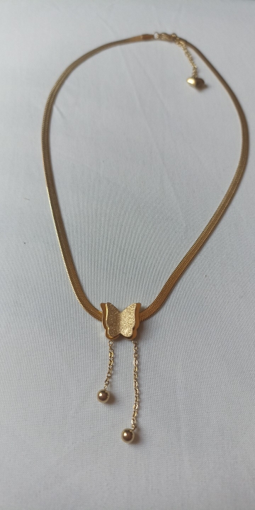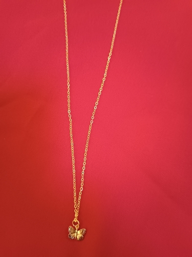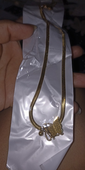 I loved the butterfly that has the chain that carries is very beautiful flexible adapts to the neck not Lumpy the color shines very beautiful the brooch that carries to learn and close is very suitable because it is hooked as they do it too much Easy to open and also to close nothing complicated, the butterfly hang two balls that make this chain look so exquisite also on the back at the brooch carries a little heart that gives that beautiful texture to this chain
