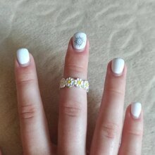 Very delicate, neat ring. I recommend it. Thank you for the fast delivery.