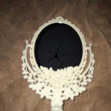 It’s a really pretty mirror. It’s just as I expected. One of the prongs broke off just from me snapping it into the base. It’s still fine. I super glued it. You’ll have to excuse the picture. I taped off the mirror to paint the mirror gold as I’m using it for decor at my wedding.