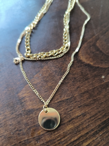 The chain is beautiful, neither very thick nor very thin, it will look good, it is a very nice gold, but mine came a little dented in the circular charm :(