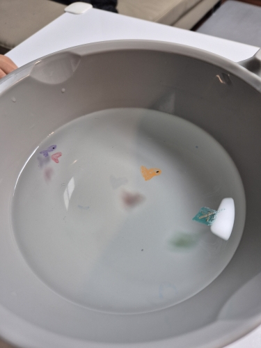 7세 아이가 엄청신기해하고 재미있어합니다 잘되는건아닌데 어쩌다 잘 만들어지면 재미있어합니다 전 차가운물에 했는데 잘되는것 같아요 다만 색을 진하게칠하고 잘 말려서 하면 성공할 확률이 높아져요 ㅎ