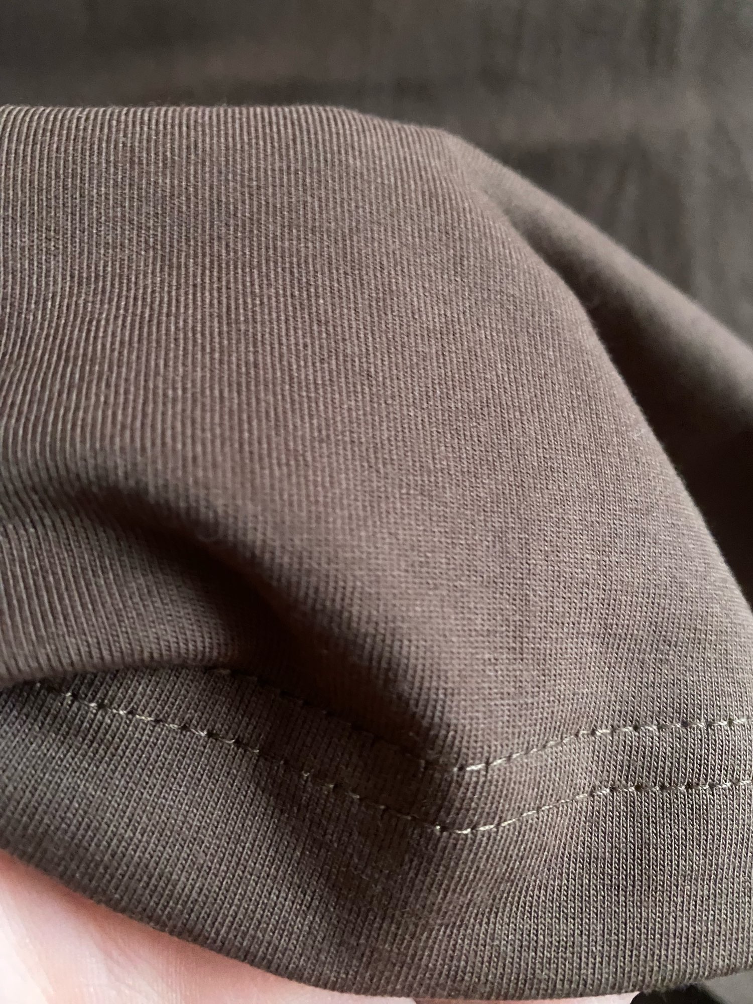 Дуже класна футболка, цупка бавовна, не світиться, шви рівні, нитки не стирчать. Ношу м, взяла м, сіло невеликим оверсайзом. Взагалі дуже гарна якість, однозначно рекомендую. Дійшло швидко.