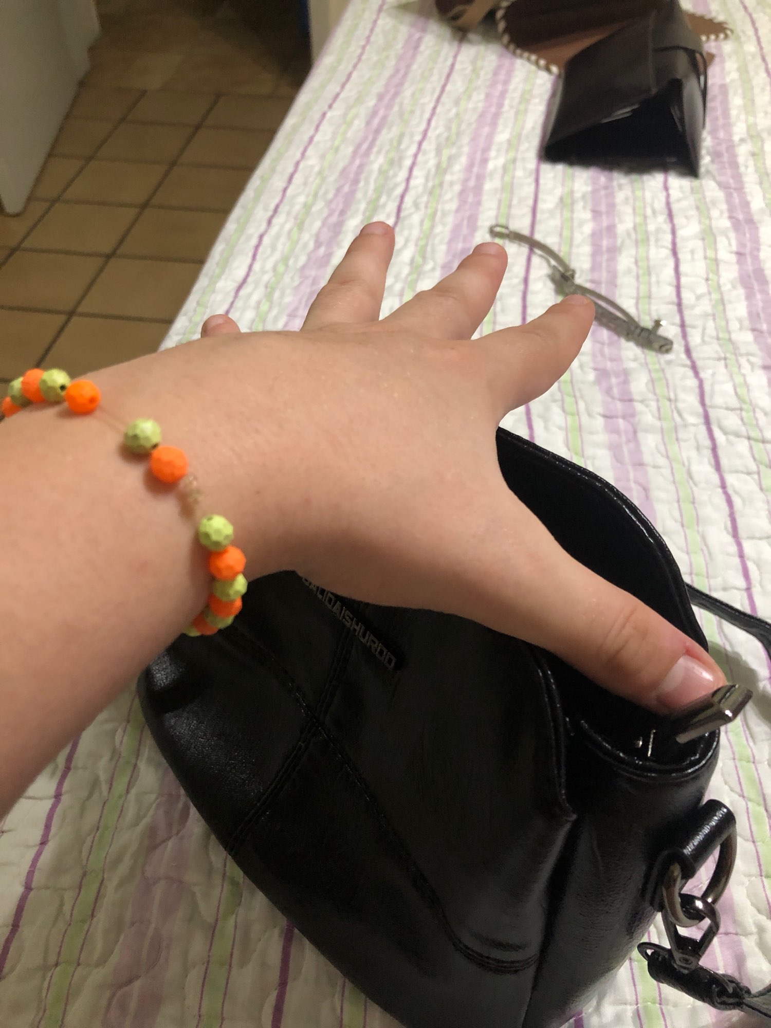 My mother loved the bag, it is soft, small, beautiful. Came with a horrible smell but we left it in the sun to get out.