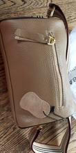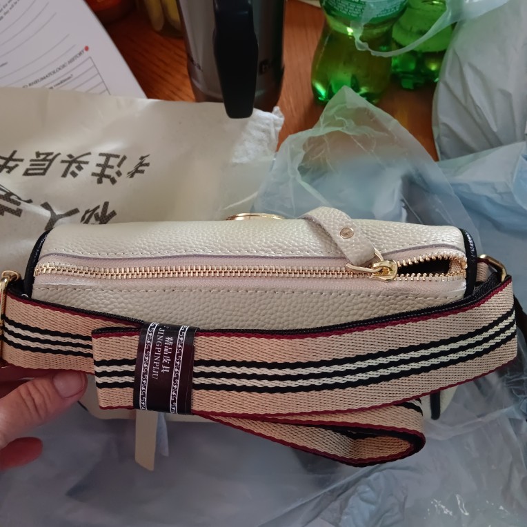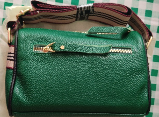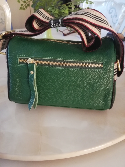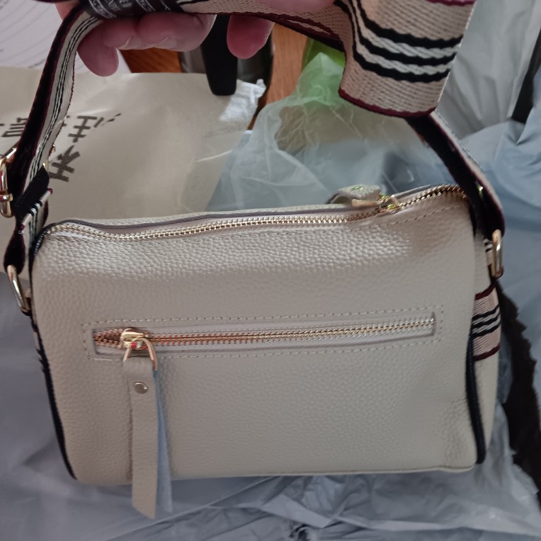 The handbag is super, genuine leather, quite thick, smells of leather, arrived quickly!