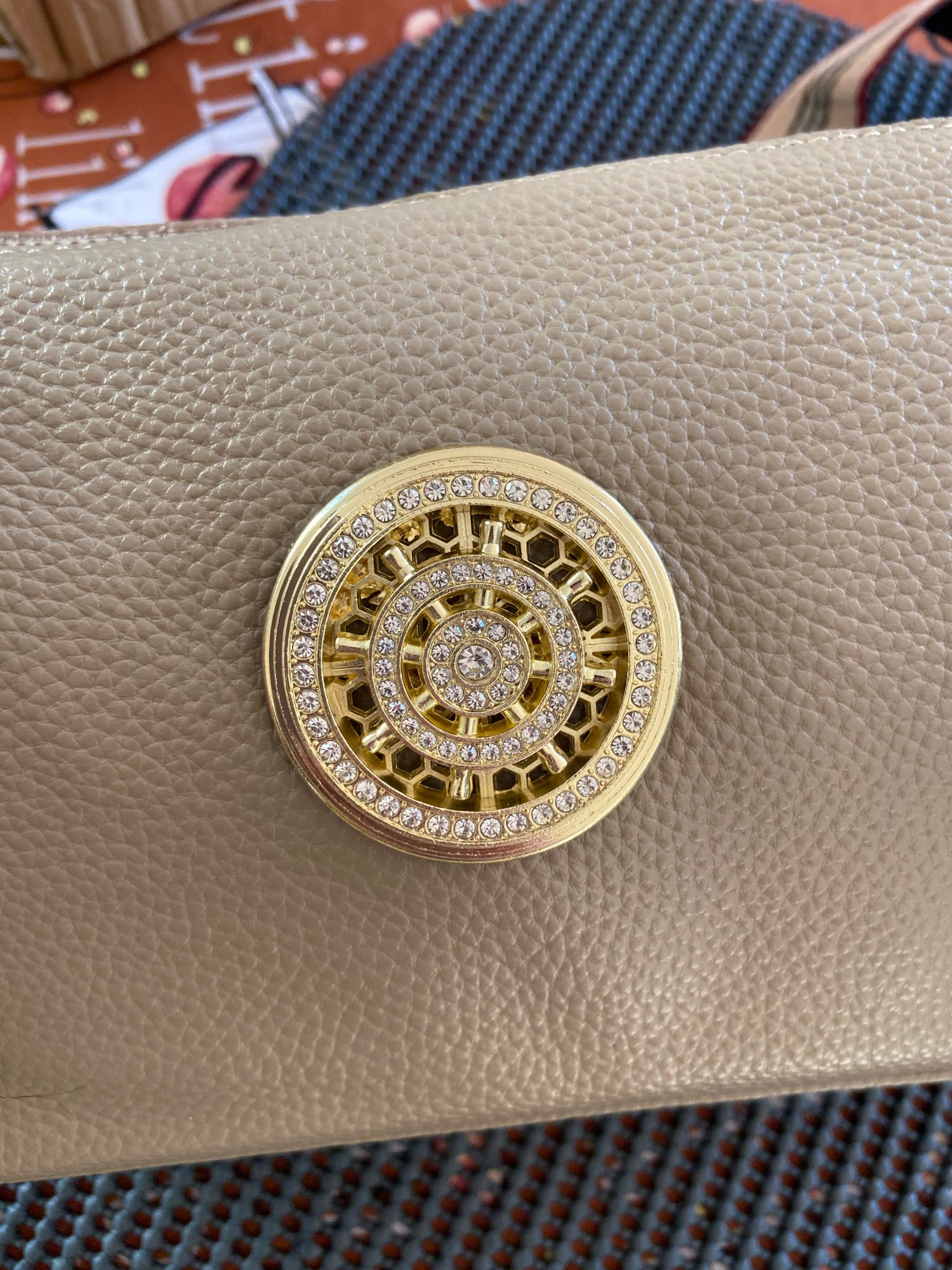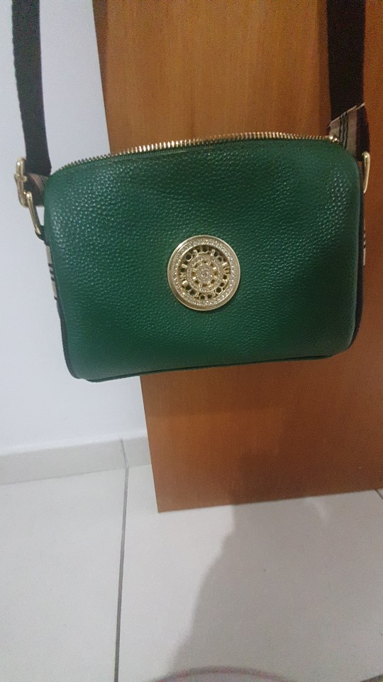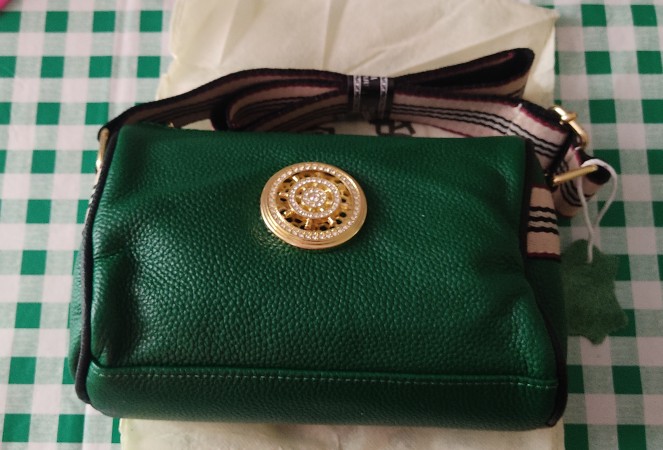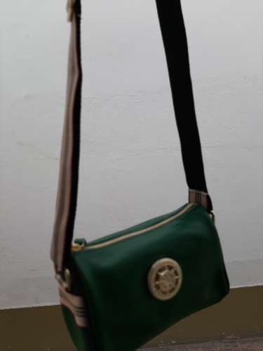 Beautiful green leather nice Crossbody with pretty medallion on the front. I like it may even keep it for myself.