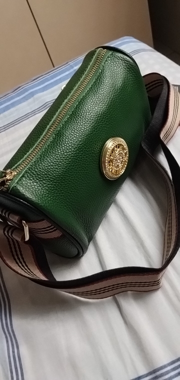 Beautiful green leather nice Crossbody with pretty medallion on the front. I like it may even keep it for myself.