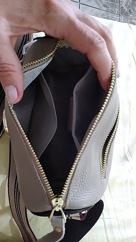 I liked the bag, a little less than expected .. My wallet doesn't fit .. The color is slightly different from the picture .. A little greyish .. Two pockets inside, one of them on the lock .. Generally recommend
