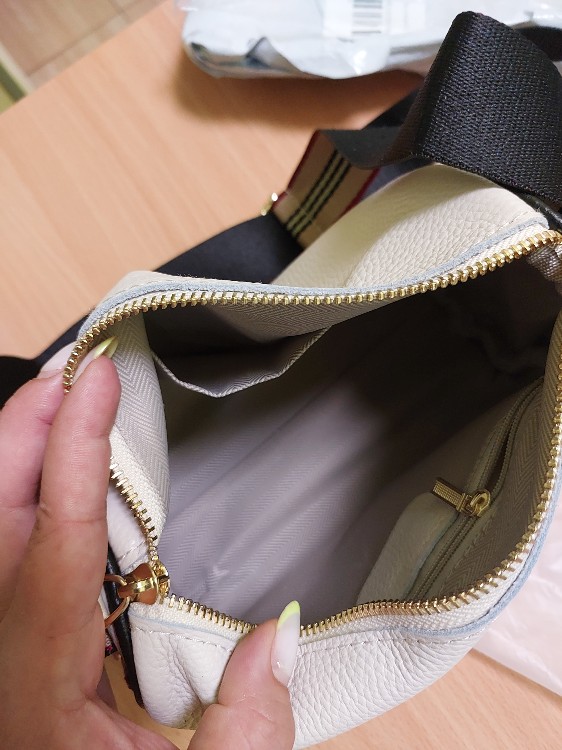 The handbag is super, genuine leather, quite thick, smells of leather, arrived quickly!