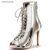 Women Shiny Leather Dance Boot Summer New Style Silver Black Soft Insole Latin Dance Shoes Salsa Bachata Dance-Boot For Ladies