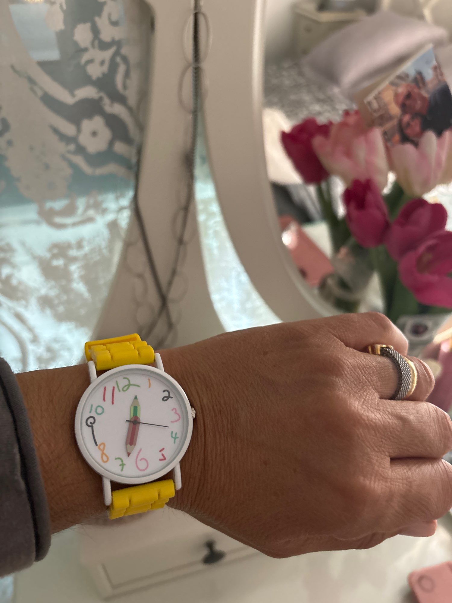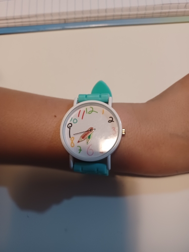 Reloj igual a la foto, bonito y funcional, calidad precio justo. Todo muy bien.