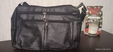 The handbag is very modest. there is no pocket on the other side, please note. there is one compartment inside and a zipper pocket. I advise you to pay extra and buy a more solid one. it took less than a month.