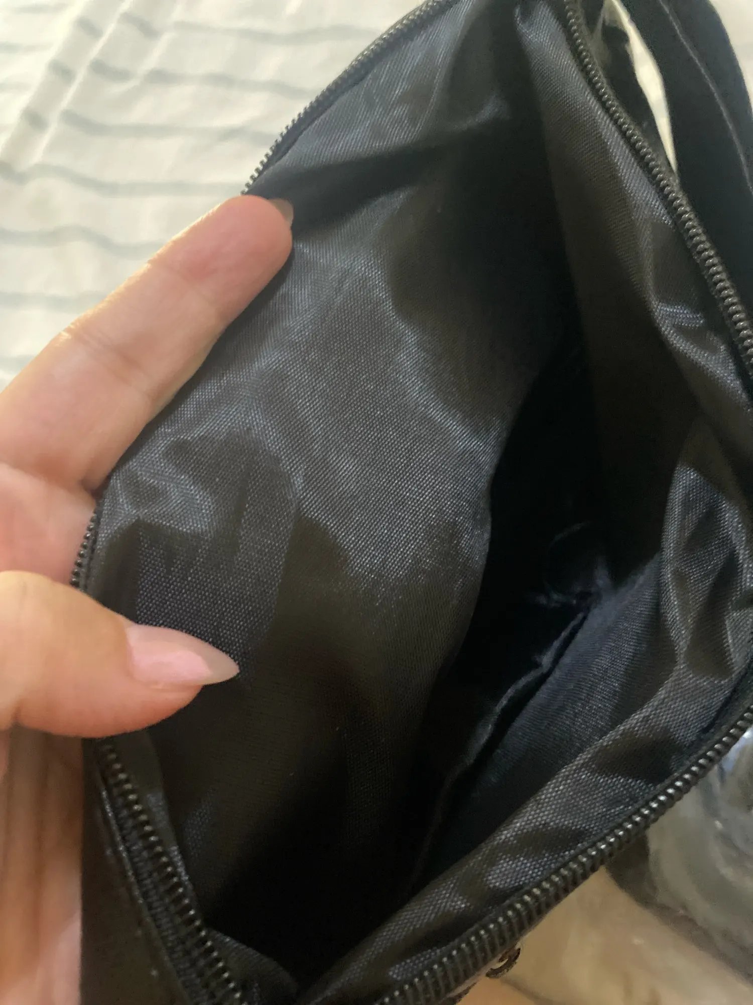 Me ha encantado,tamaño adecuado para teléfono,,cargador monedero,cartera y bolsas del perro.Departamento para llaves:bueno.