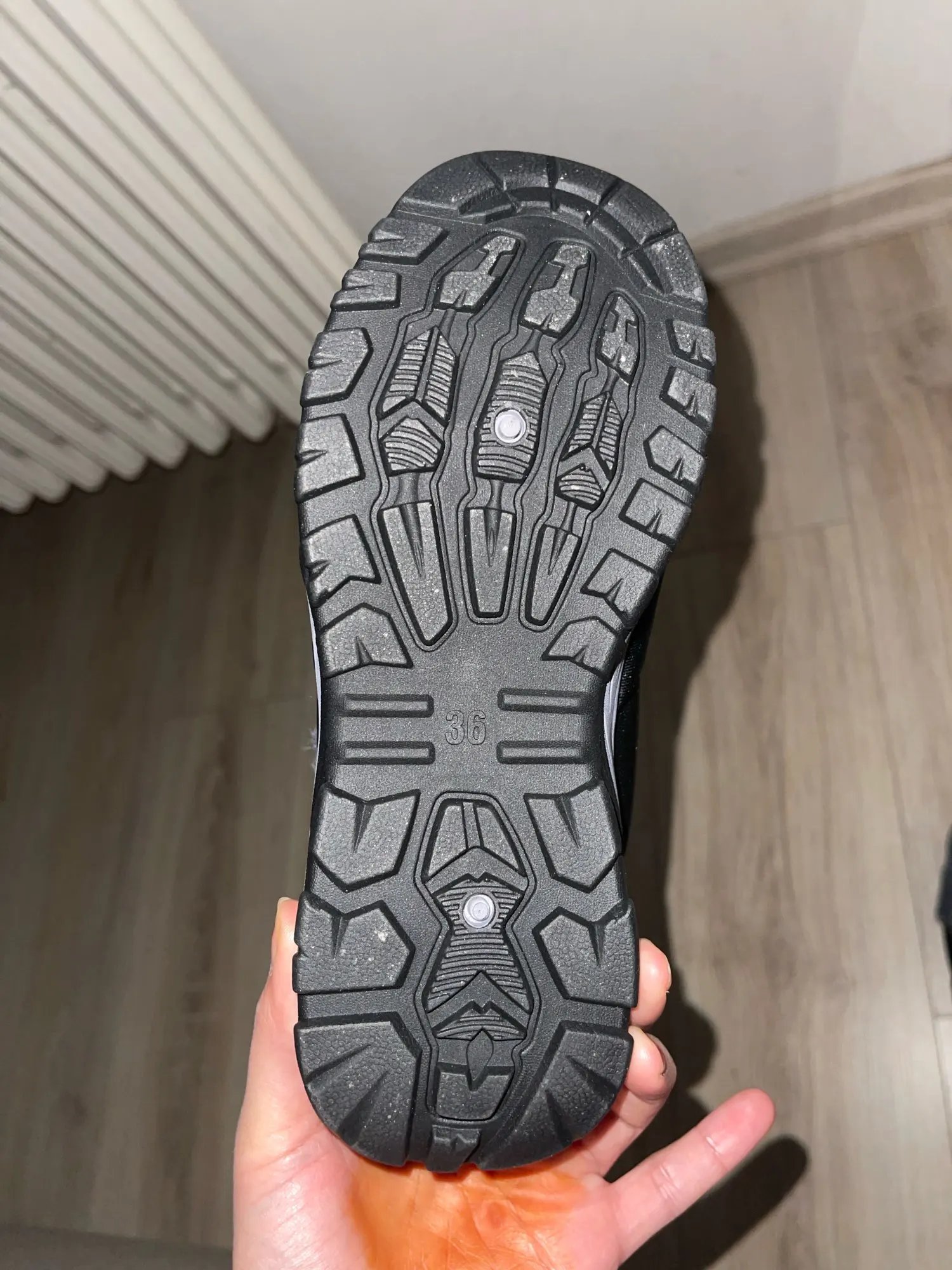 Igual a la foto bonito diseño moderno, suela un poco gruesa, pesan poco, la felpa es de pelo corto, son cómodos. La talla 40 corresponde a un 4.5 de México y 7.5 de EU. admitiendo el calcetín. El defecto que veo es que NO son impermeables.