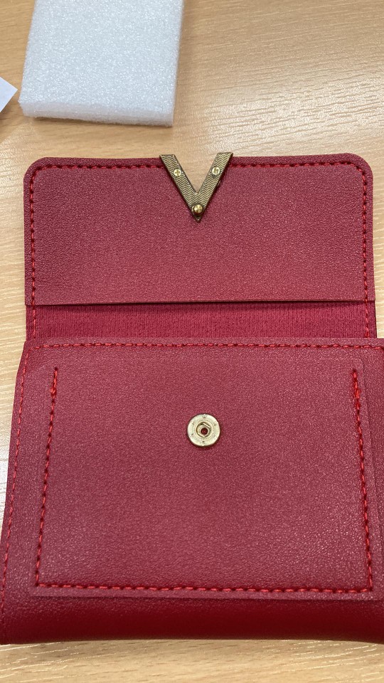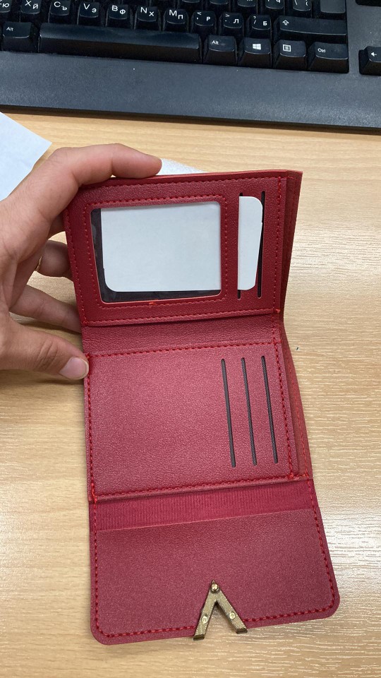 A lovely wallet. Fully corresponds to the description on the site. The quality is good, the seams are smooth, the bank cards are included, the bills too. I recommend it. Came very quickly to Russia (Novosibirsk).