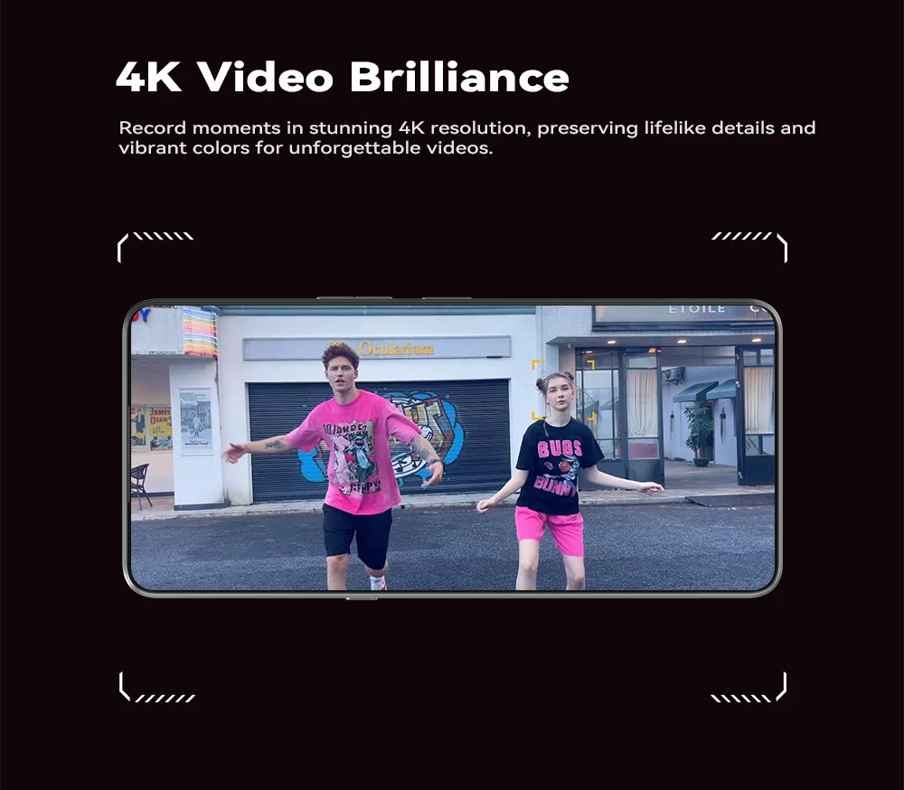 Record moments in stunning 4K resolution, preserving lifelike details and vibrant colors for unforgettable videos.