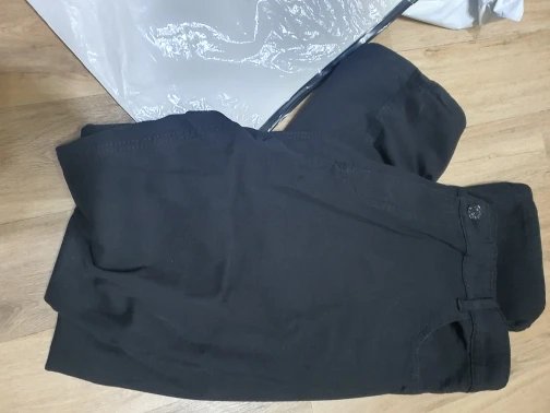 Быстрая отправка и доставка. Брюки неплохие, качество пошива хорошее. Запаха нет. На рост 178 немного длинноваты, надо подшить. На вес 75 немного тесноваты. Что примечательно, эти же брюки тоже 34 размера, но тёмно-синего цвета сидят отлично и не давят. Вот такой разброс качества...