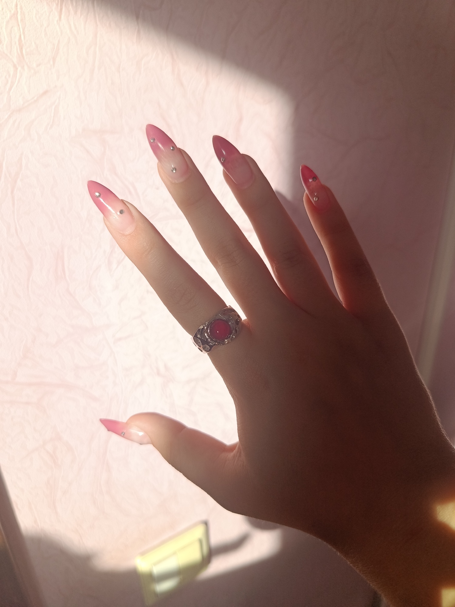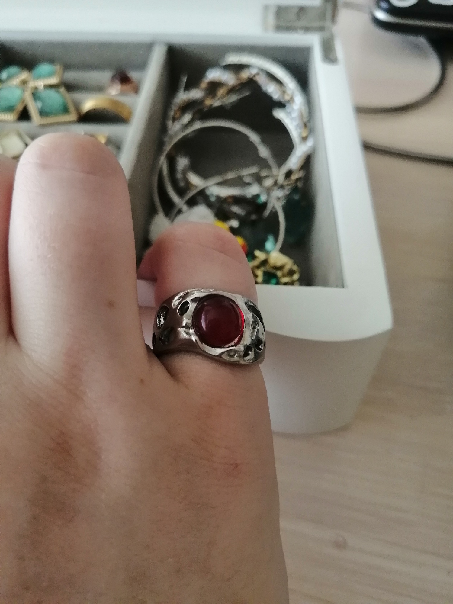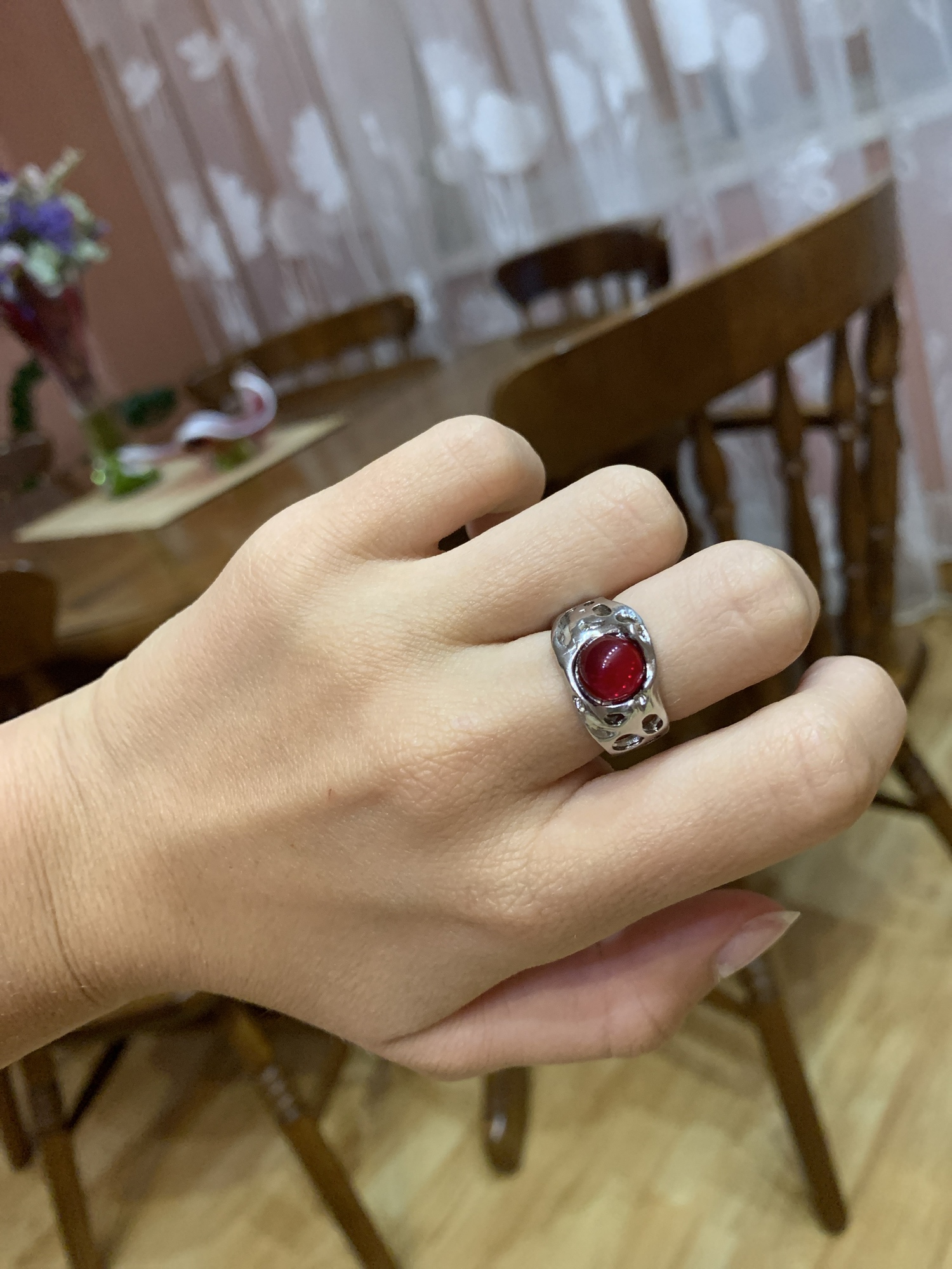 Beautiful ring! I advise it is beautiful, in the sun it is light red
