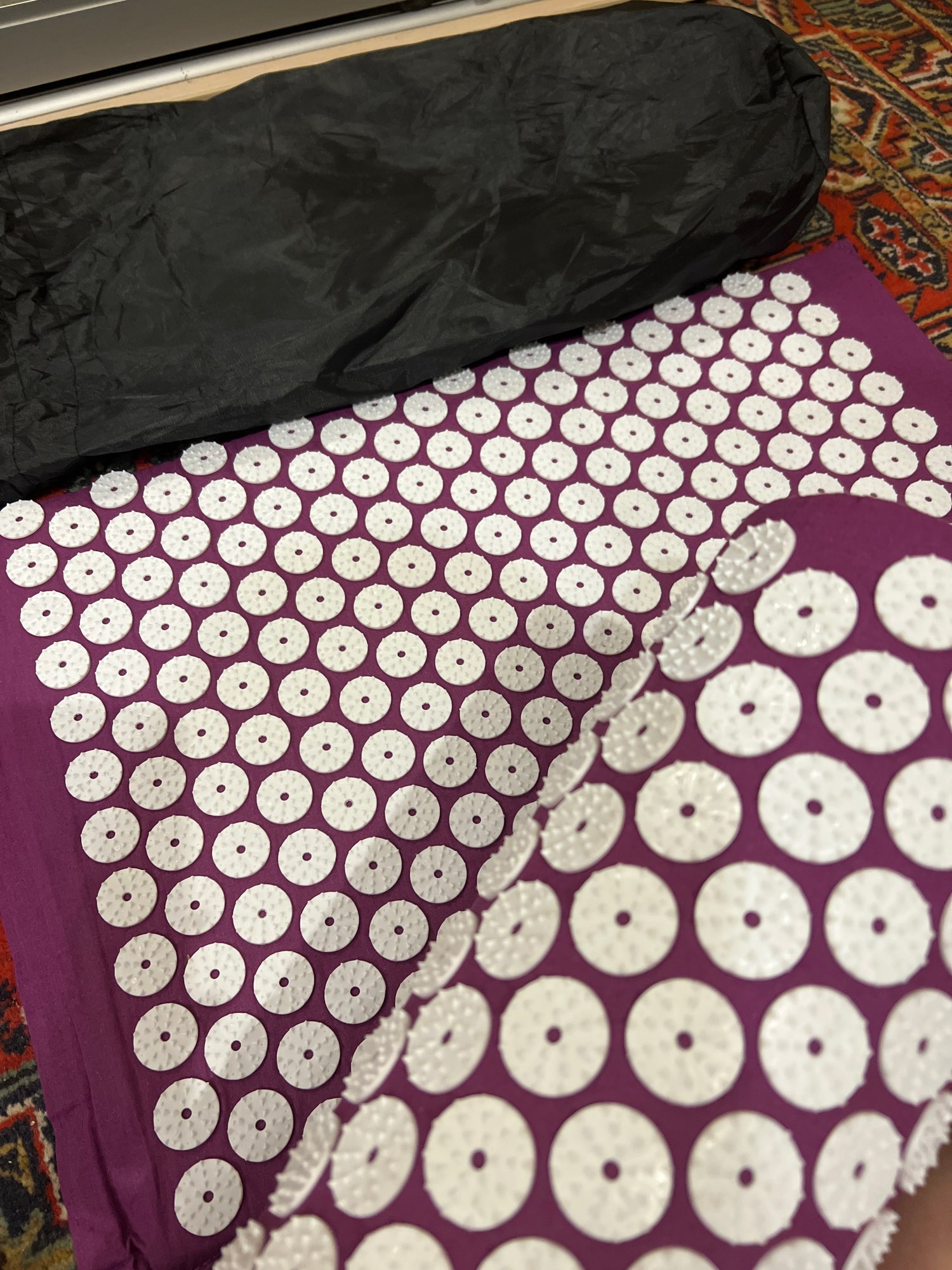 Швидко приїхав. Зручне пакування, є мішок для зберігання. Доволі гострі шипи. Чудово розслабляє перед сном.