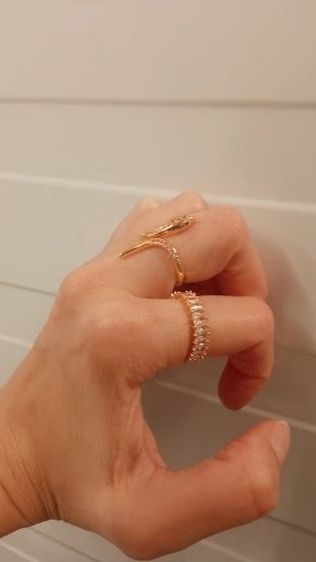 Satisfied with this ring! I love the shape. The little bents makes it shine in every angle. The only thing is that although it is adjustable, it is very stiff and difficult to adjust. Gold looks good quality. I think this type of style looks good on every type of finger. Seller shipped immediately and has very good prices. I ordered three rings from this store and they all came correct